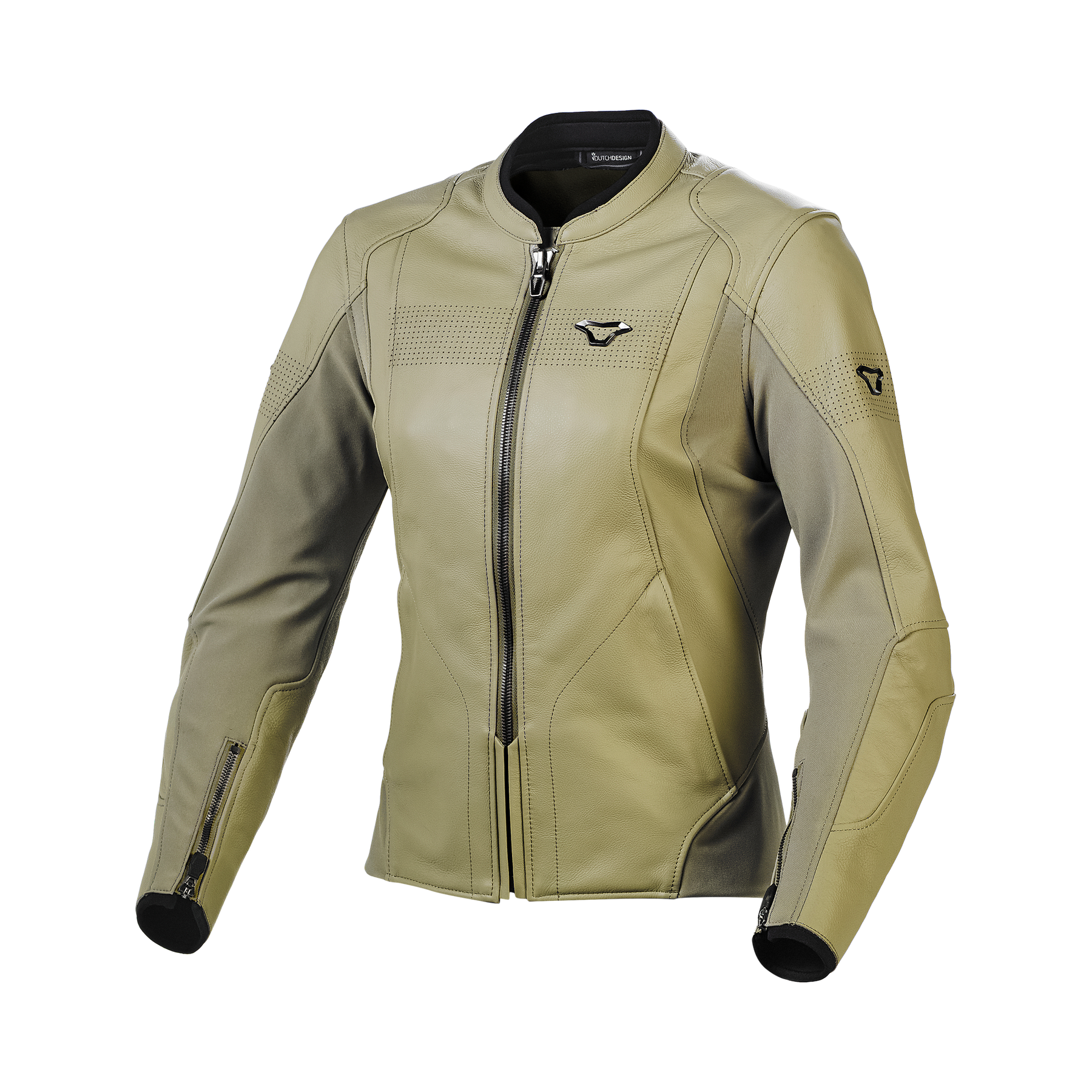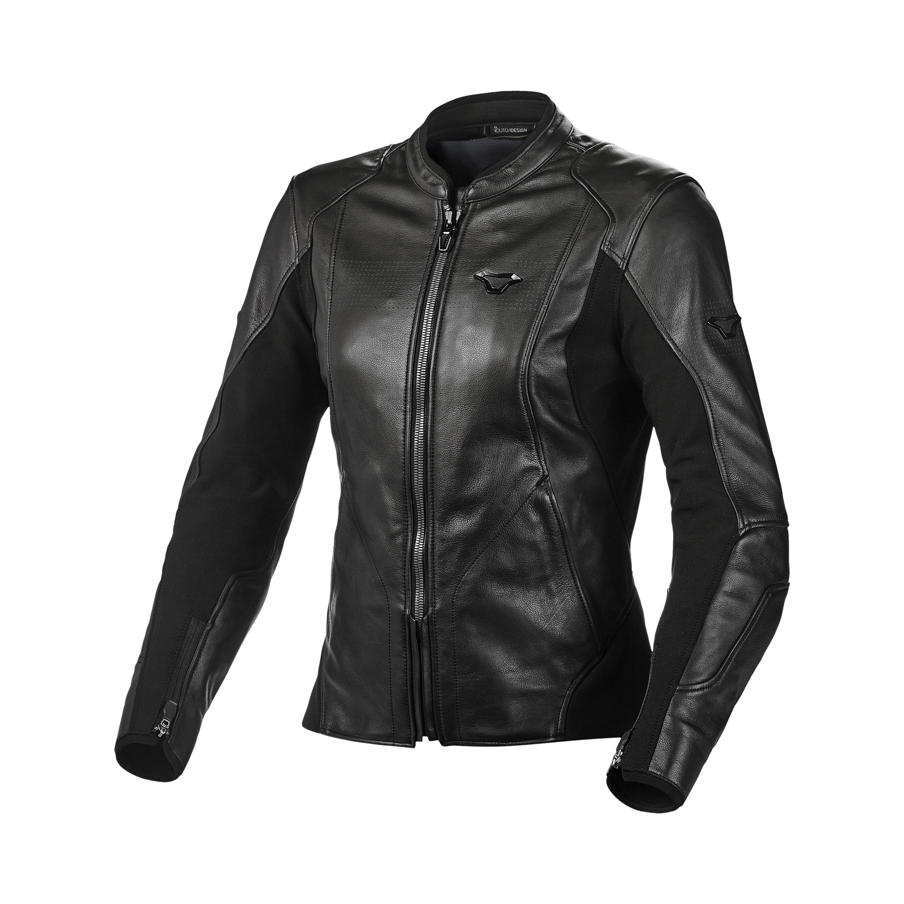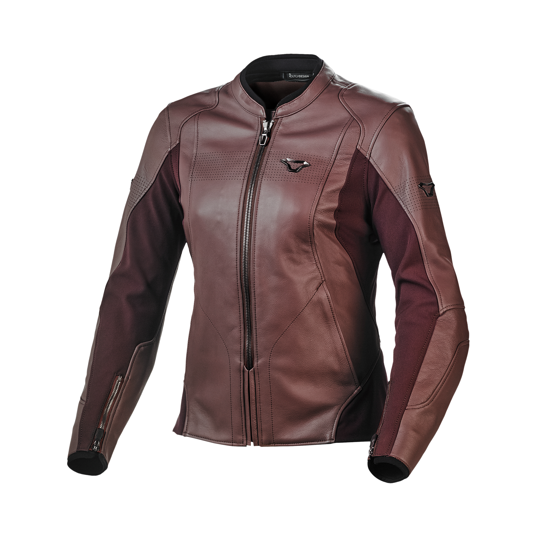 Een leren jas, ontworpen voor het vrouwelijke lichaam en ontwikkeld voor tourjassen en adventure-jassen in warme omstandigheden.
